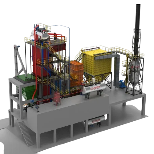 Предназначен для эффективного сжигания твёрдого топлива, такого как уголь, биомасса или отходы. В нижней части котла находится вращающаяся решетка, на которую подается топливо. Зола автоматически удаляется, обеспечивая непрерывное горение. Подходит для различных видов топлива, однако наличие подвижных частей увеличивает затраты на обслуживание и первоначальные инвестиции.